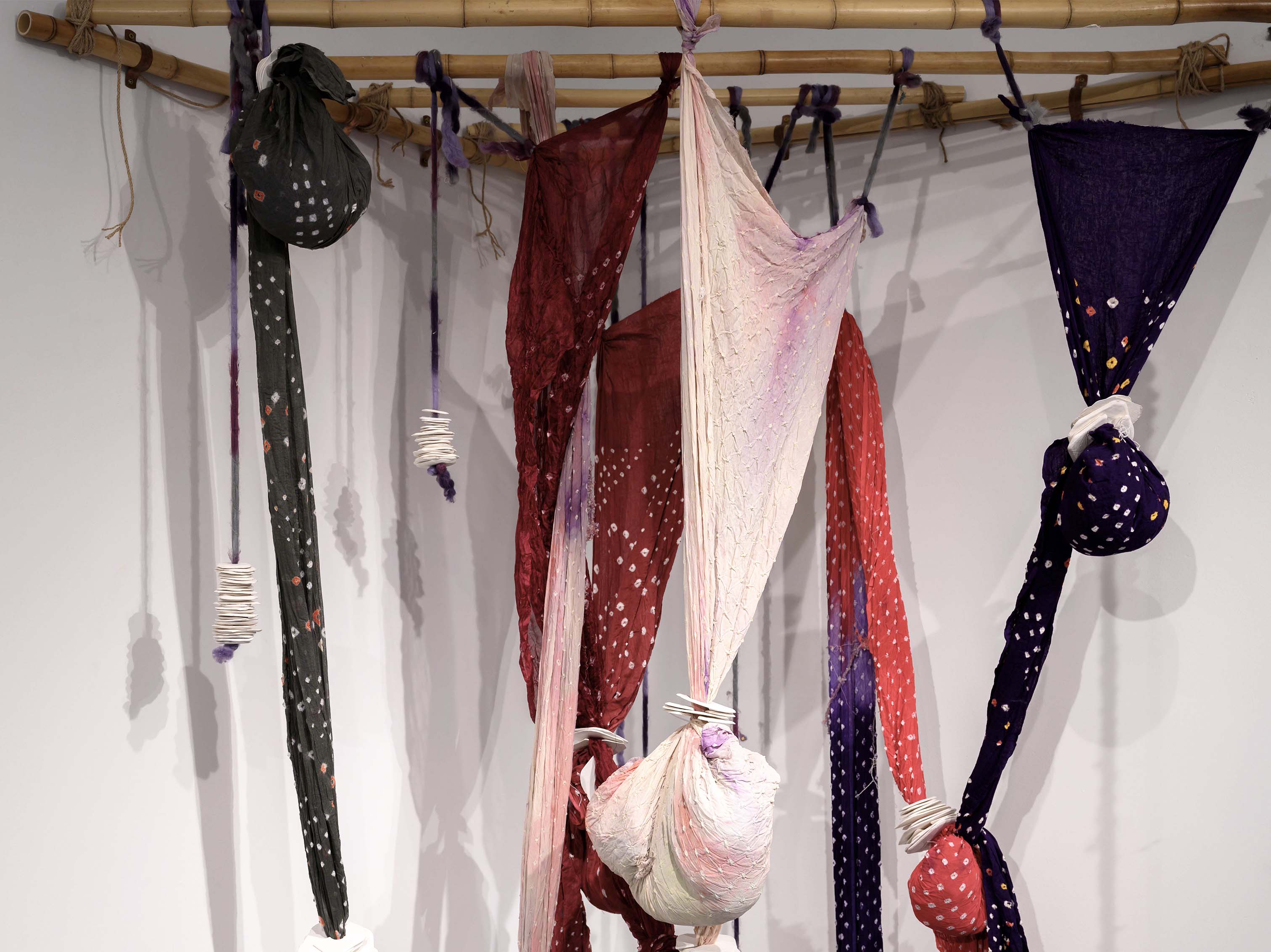 Drawing from Indian folk traditions such as Bandhani fabric, her work translates systems of generational knowledge into contemporary spatial forms.