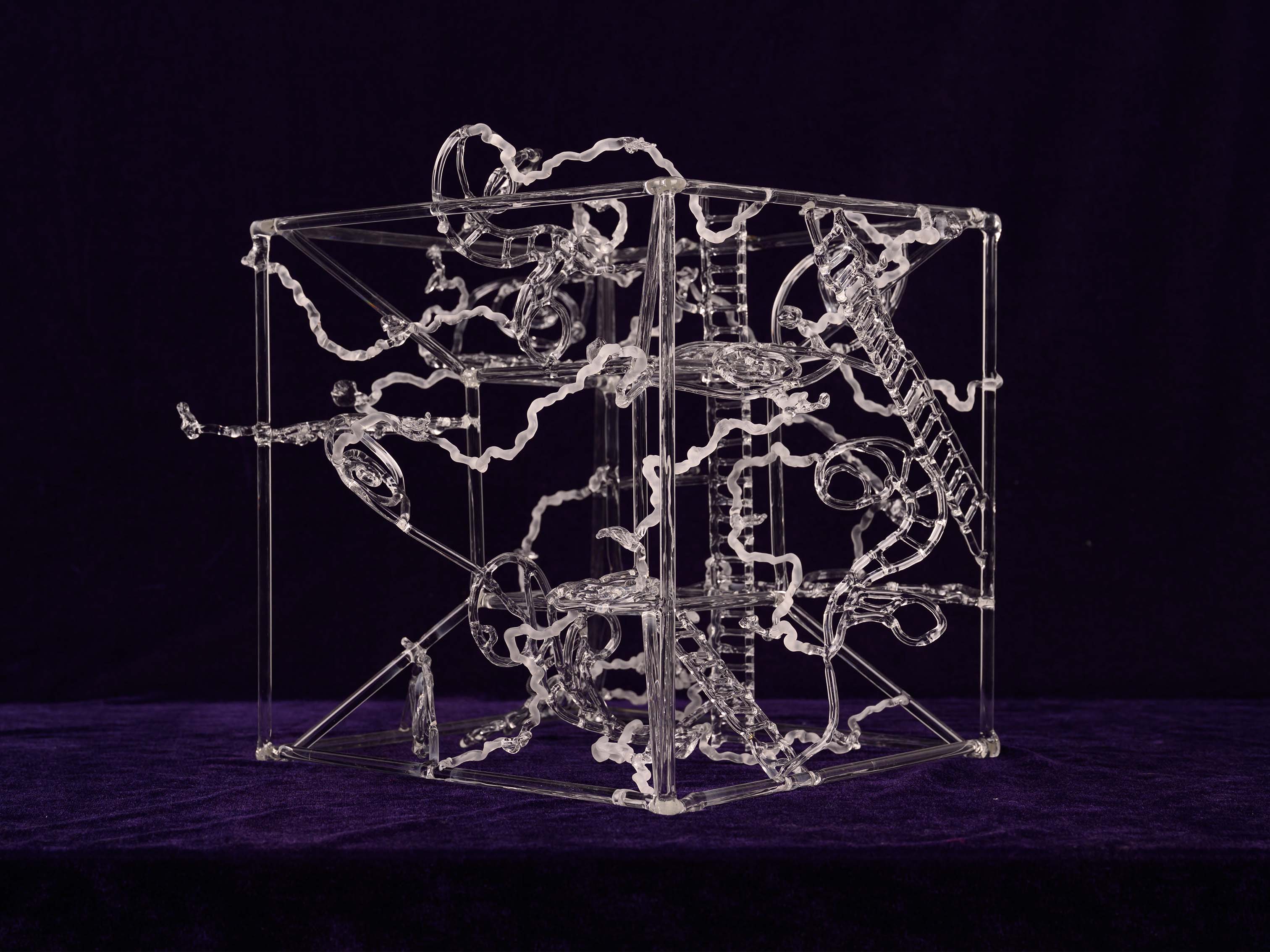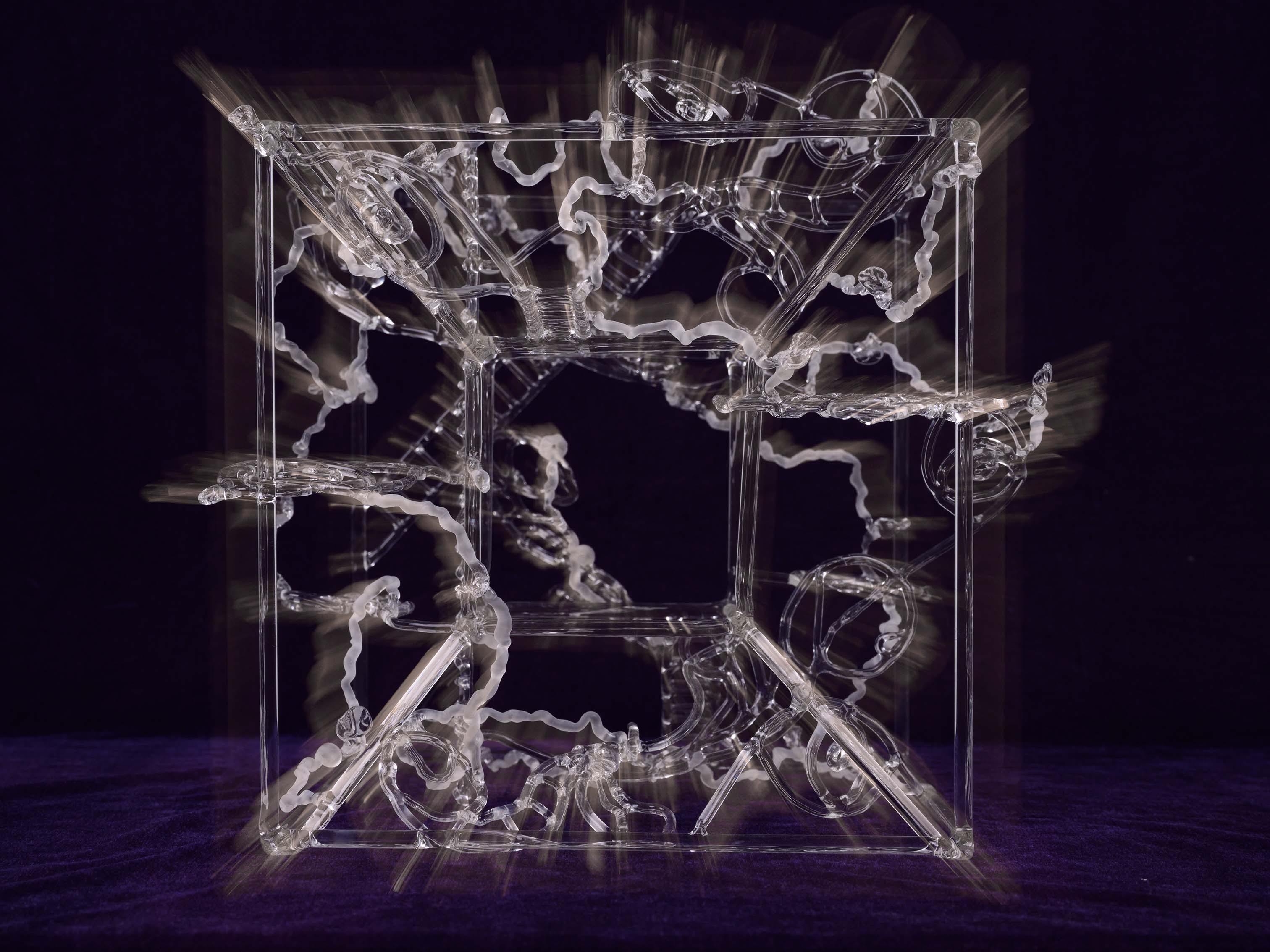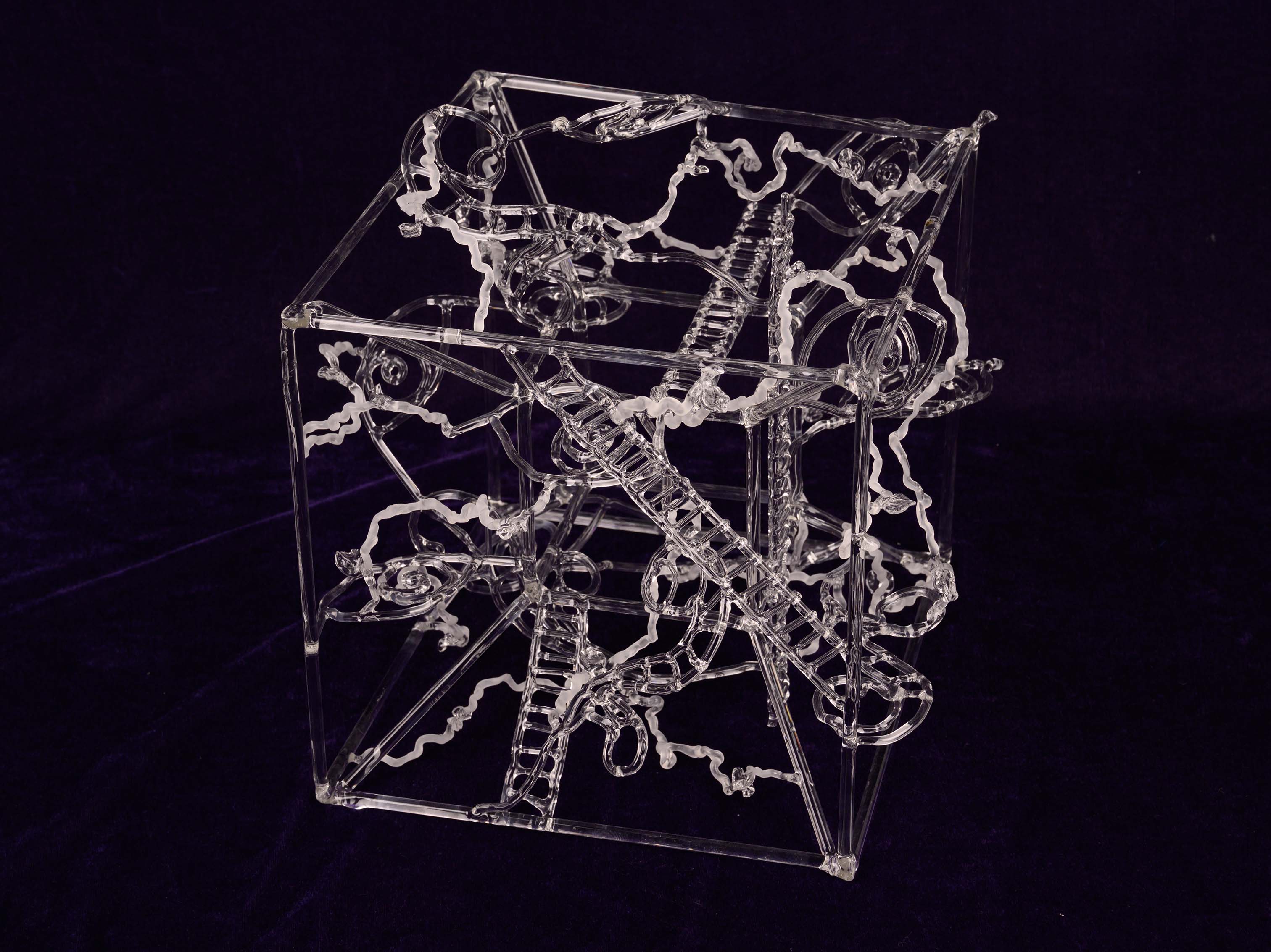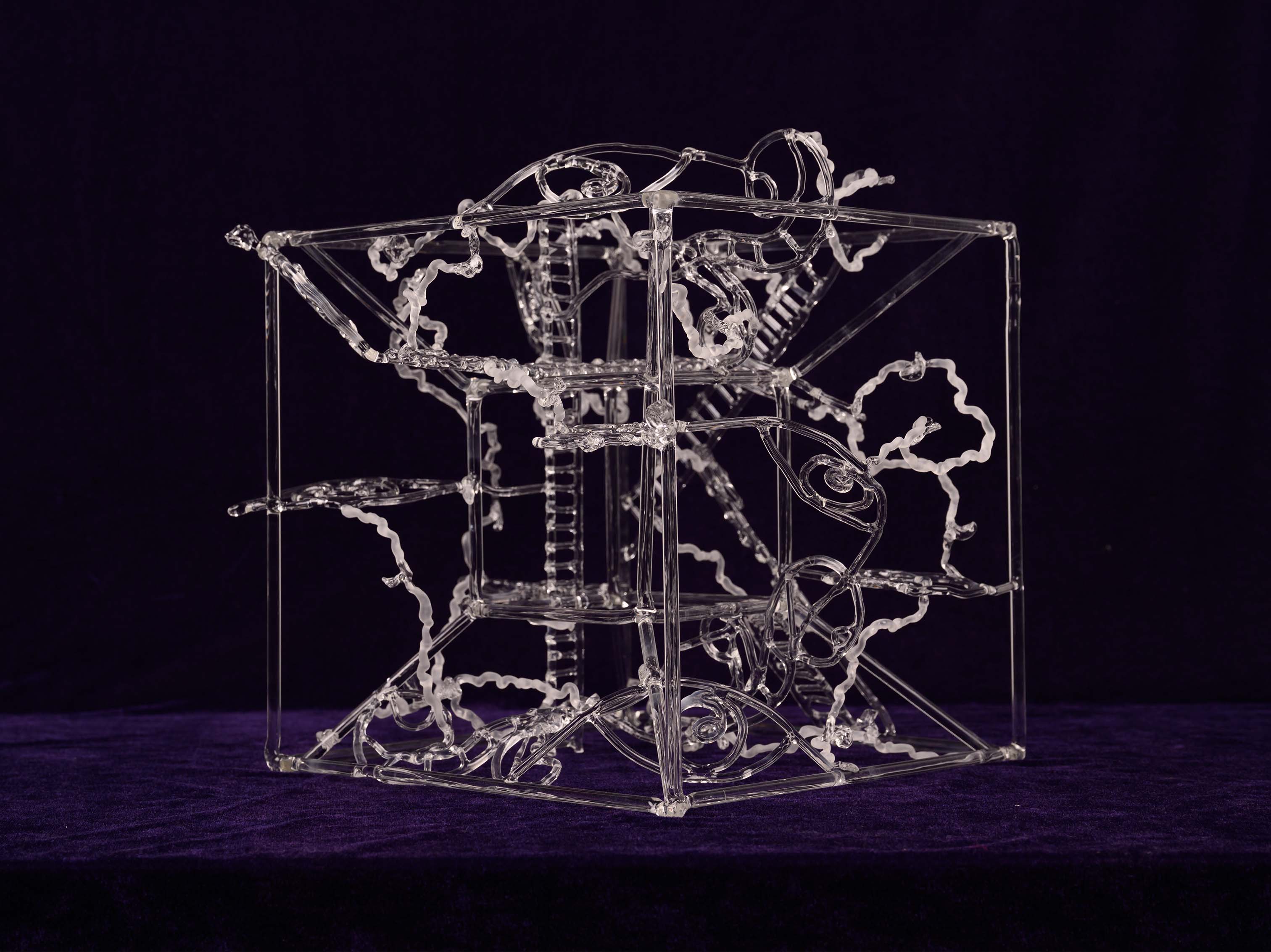 Carried On reflects on cultural continuity despite loss. Inspired by temple shrines whose central figures have been removed or destroyed, the work presents a transparent structure with an open core. The empty space acknowledges histories of erasure while suggesting that cultures persist and transform even when parts of their past are missing.