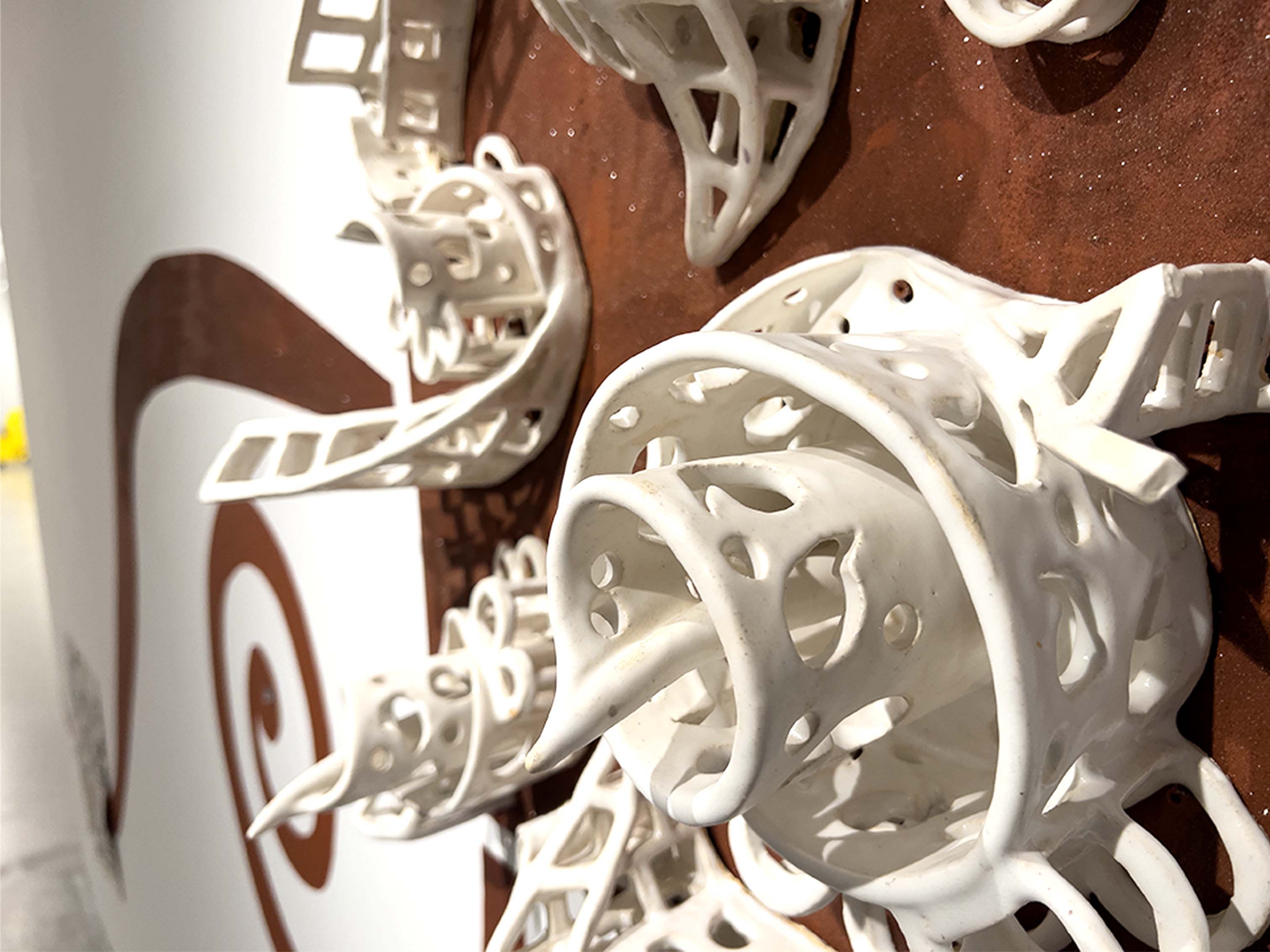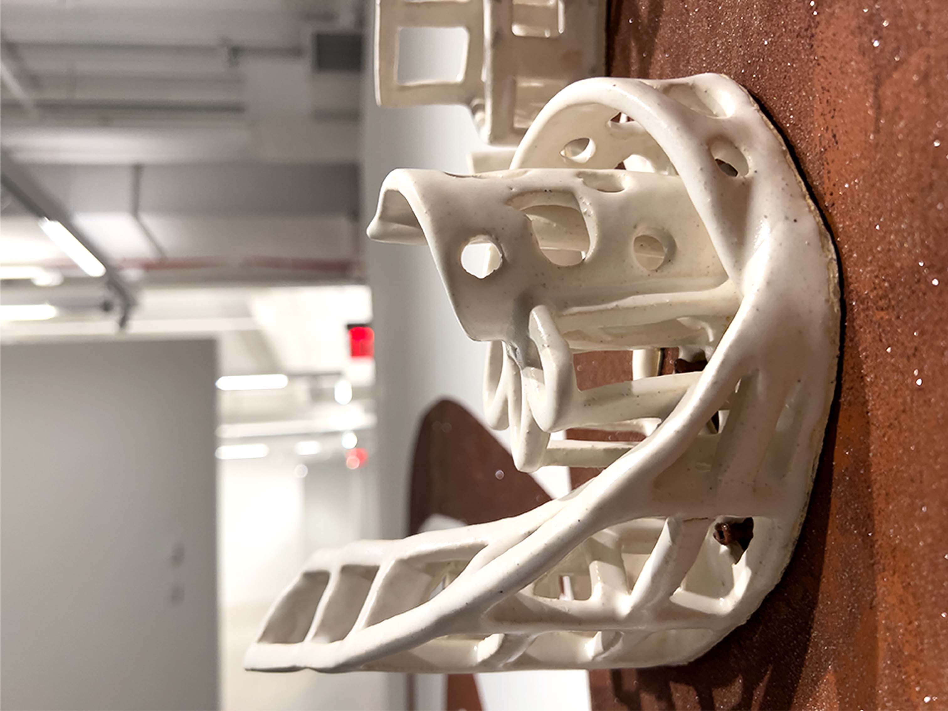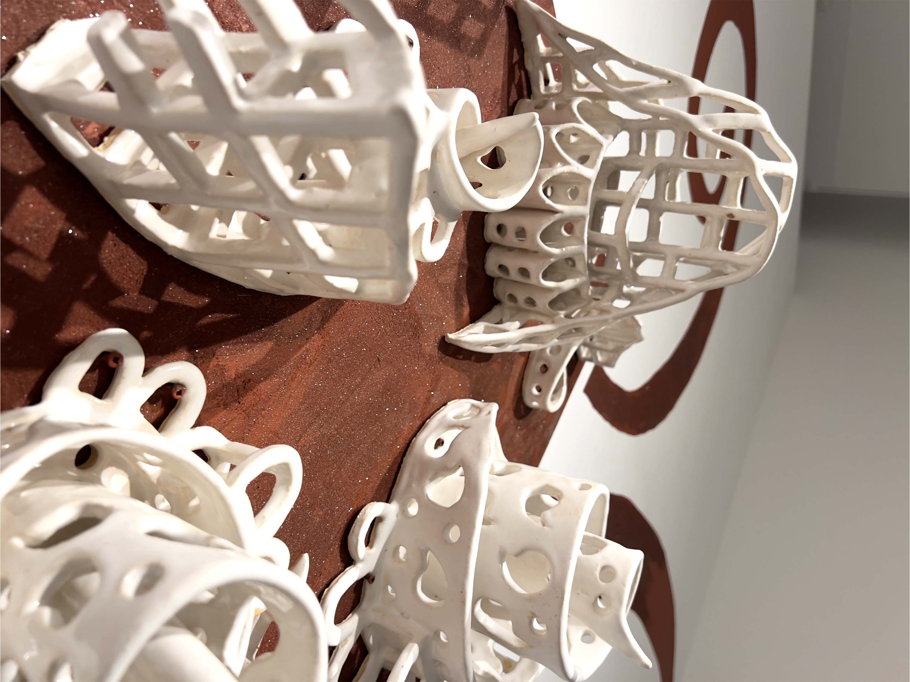 Ceramic, glaze, rangoli (Indian decorative sand)